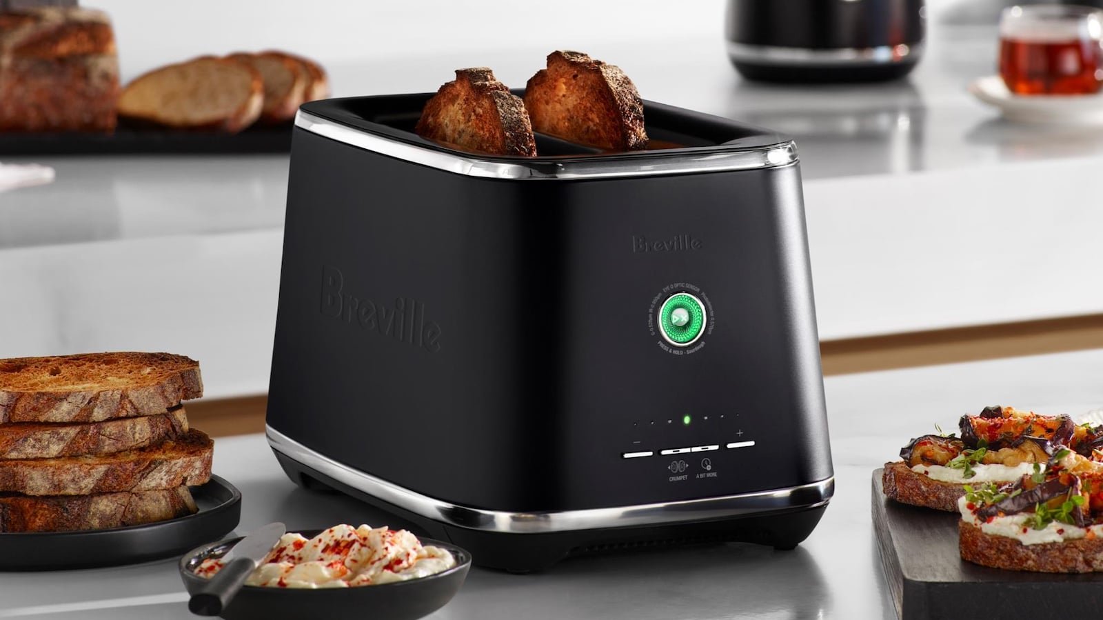 Enjoy reliable, even toast with the Breville Eye Q 850 Auto 2 Slice Toaster, which toasts by color instead of time for steady results.
