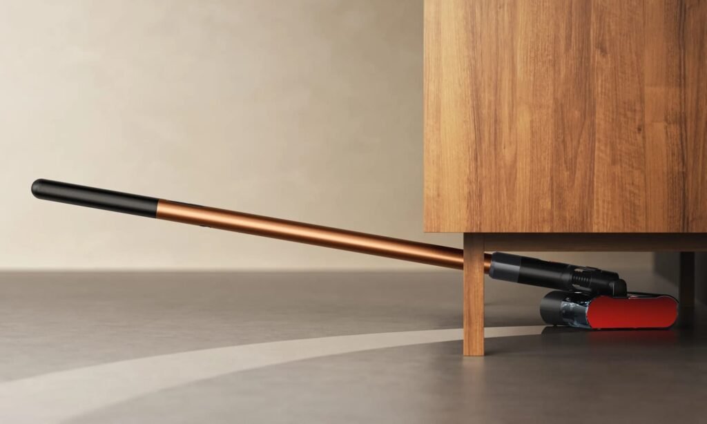 The ultra-thin handle is gorgeous and useful. The pivot allows it to drop almost flat, which means it slides under couches, beds, or low cabinets without you doing yoga. That detail alone tells me someone actually tested this in real homes.