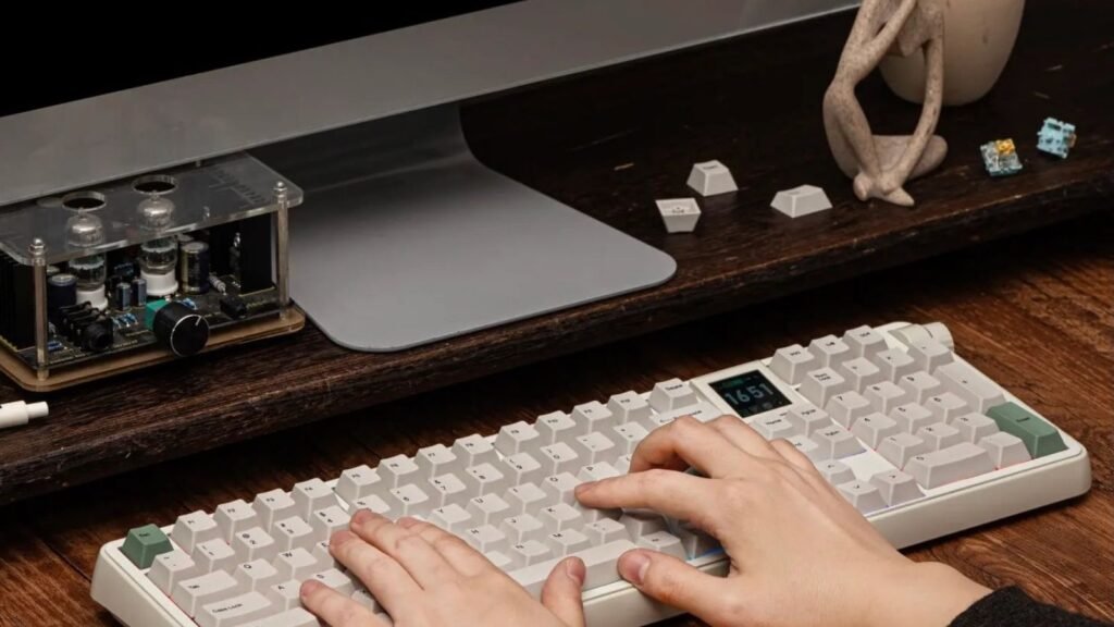 Bring retro character to your desk with the EPOMAKER RT100 PRO. This mechanical keyboard mixes a vintage design with modern features such as a smart screen module, side knob, and compact 1800 layout.
