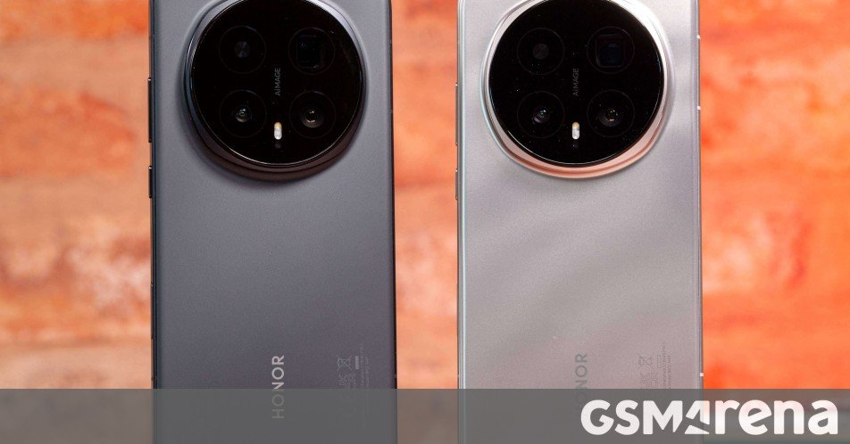 We had the chance to check out the blue-ish Mint Magic8 Pro while at Honor’s announcement event, and now we also have the silver-ish Gold. They share the wavy lines that appear on the rear panel under specific light.