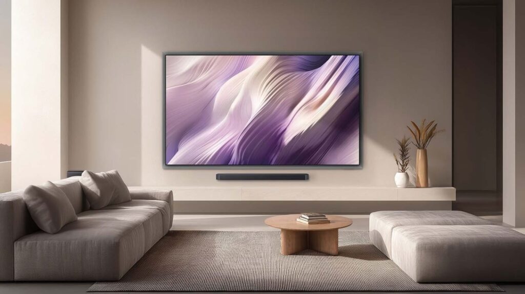 The flagship S95H introduces what Samsung calls a “FloatLayer” design, and it’s exactly what it sounds like—the screen appears to float against the wall.